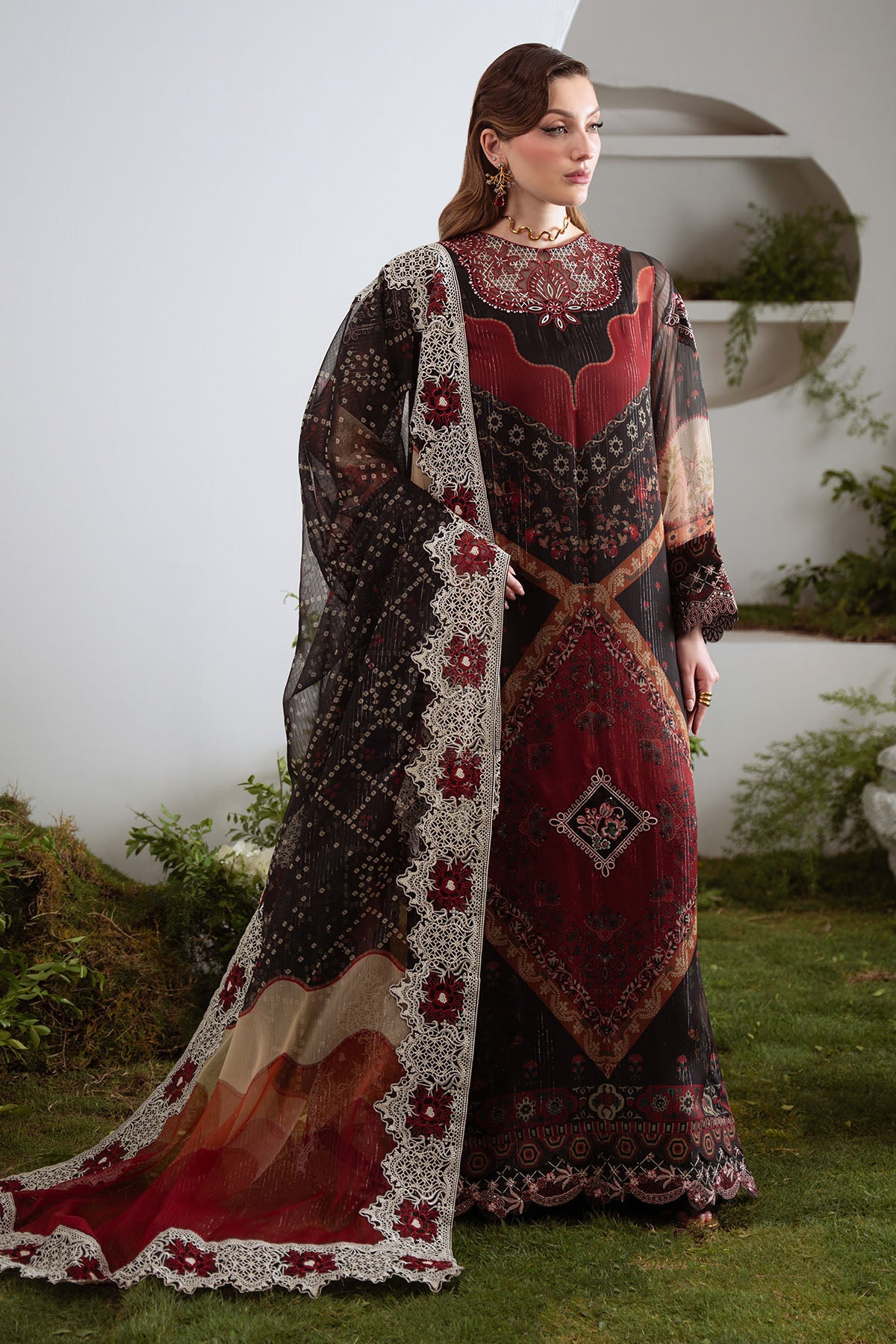 - Embroidered And Printed Chiffon Front